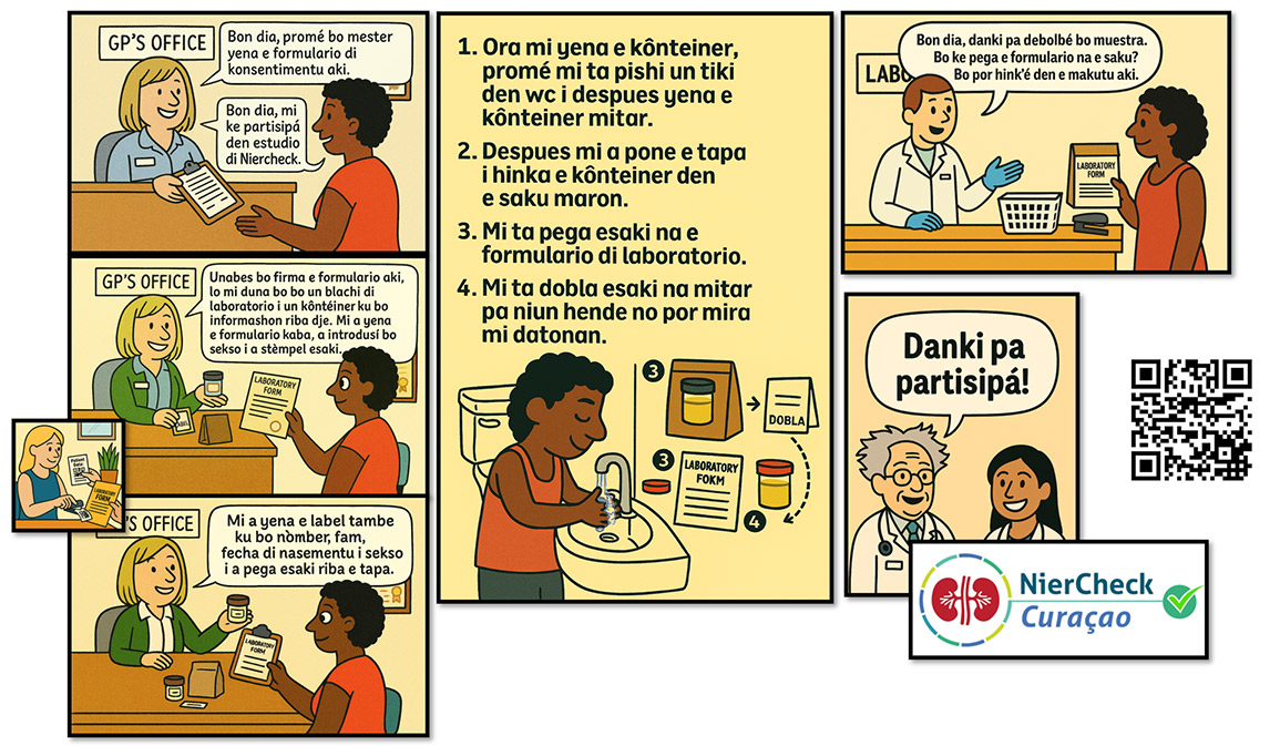 - Despues di yena e formulario di konsentimentu, lo bo risibí un pochi huntu ku un formulario di laboratorio di Niercheck. E asistente di dòkter di kas lo asistí bo na e bali.